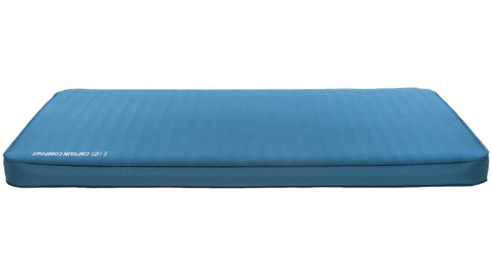 Captain Comfort lives up to its name with up to 5′ of thickness for maximum comfort. This self-inflating, 3D foam-core pad is covered in a stretch fabric for a soft-touch feel that you will want to lounge on all day. With an 8-plus R-Value, you’ll sleep through even the coldest nights with ease. The cushioned, pillowy sleeping surface and vertical sidewalls will have you dreaming of the next day’s adventure, and waking up so well rested you’ll forget you’re not at home in your bed!![]()