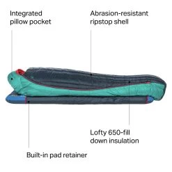The Big Agnes Daisy Mae Sleeping Bag offers warmth and roomy space to keep comfy on backpacking trips while being highly compressible so as not to take up too much room in your pack. Its face fabric and warm down insulation are both water-resistant for wet conditions while the streamlined silhouette provides thermal efficiency for a comfortable night’s sleep. A Pillow Barn prevents your pillow from slipping around while you sleep, or, if you’re really pressed for space, you can load all your extra layers in instead of bringing along a bulky pillow.