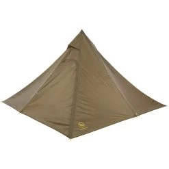 With its pyramid design and adjustable center pole, the Big Agnes Gold Camp UL 5 Tarp is a reliable, lightweight, and versatile shelter for up to 5 people and pets. We like it for traveling fast and light when we don’t have to worry too much about bugs or the weather. The shelter can be supported with the adjustable center pole or hung by the exterior peak loop. Adjustable stake-out loops make setup simple while the reflective guy-outs add stability and visibility. With a trail weight just under 3 pounds for 5 people, it’s a minimalist option that pitches fast and travels light.