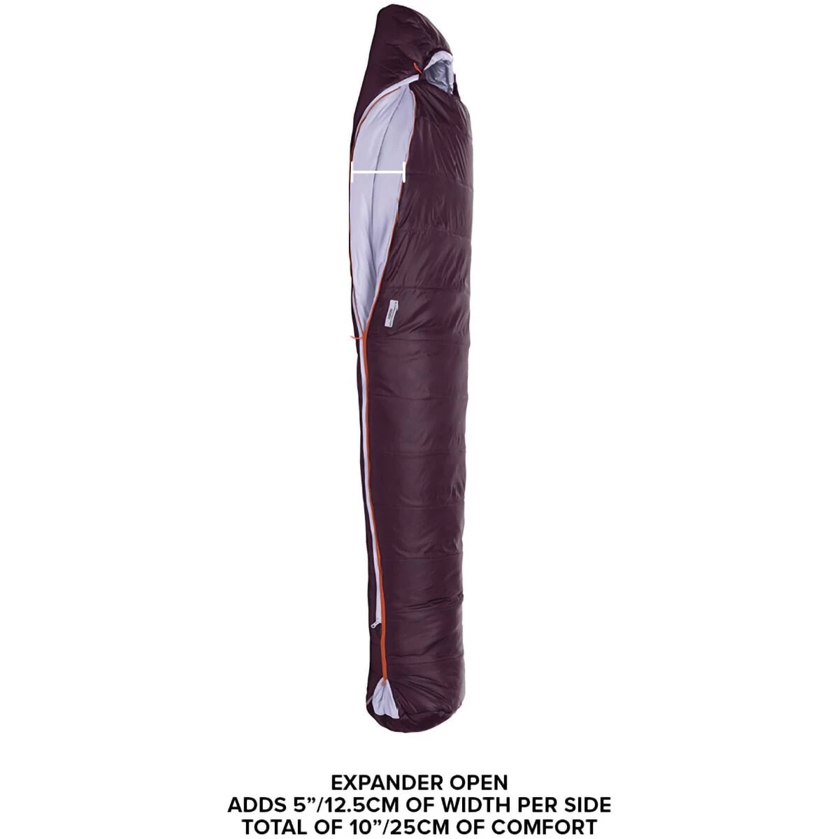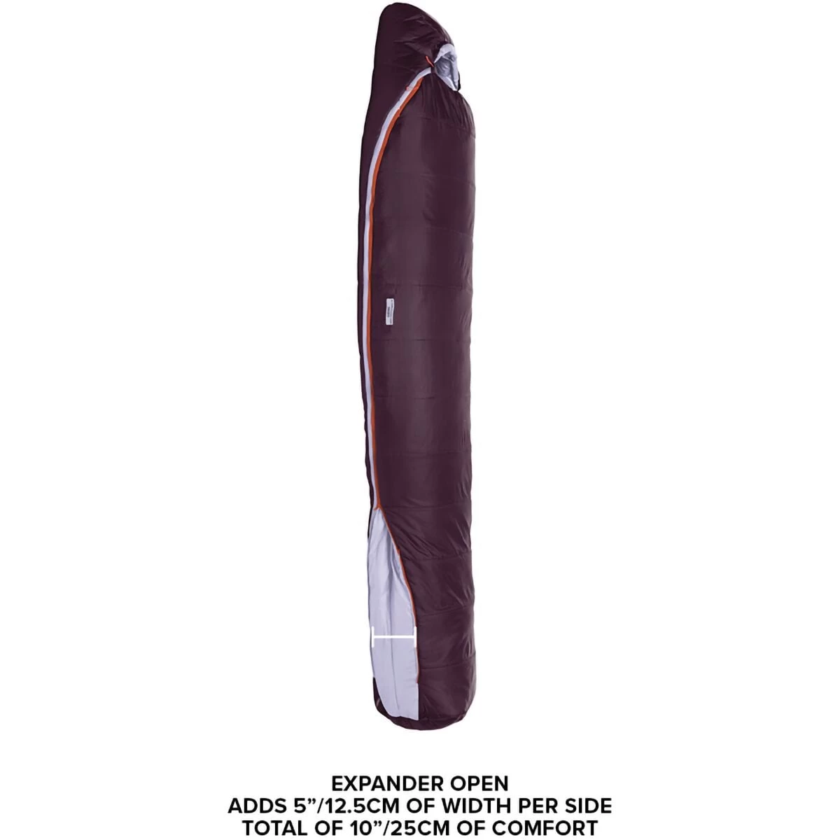 - Contoured mummy bag for campsite comfort